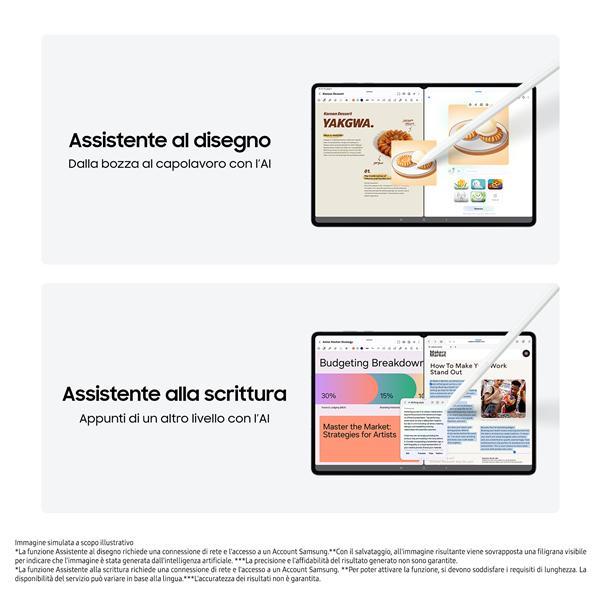 La creatività trova qui la sua espressione naturale. La nuova S Pen esagonale è sempre carica e pronta all’uso, offrendo una presa comoda e una precisione assoluta per disegnare o prendere appunti. Non si tratta solo di uno strumento passivo: l’intelligenza artificiale del tablet ti supporta attivamente.