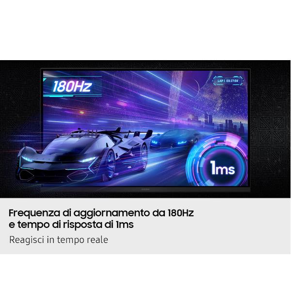 Il pannello Fast IPS garantisce colori vividi e fedeli da qualsiasi angolazione, mentre il tempo di risposta di 1ms e la frequenza di aggiornamento a 180Hz eliminano ogni traccia di mosso e tearing. Ogni movimento è fluido, ogni scatto è immediato. La tecnologia HDR10 aggiunge profondità e realismo, esaltando luci e ombre.