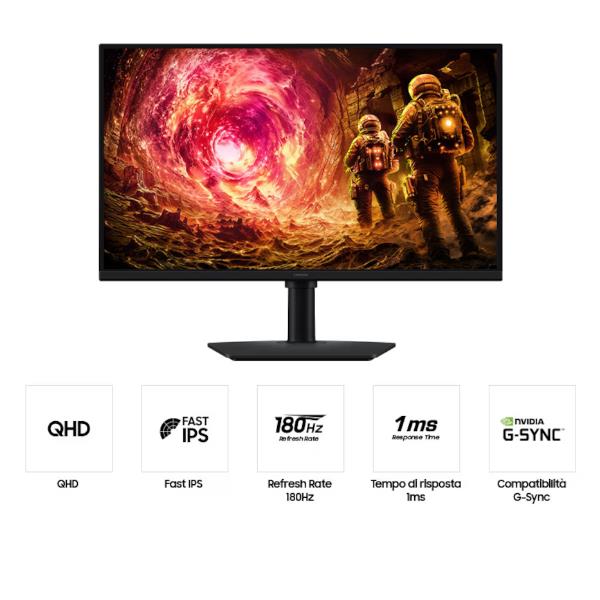 Il monitor gaming Odyssey G5 G50F da 27″ non è solo un display, è il tuo alleato definitivo per la vittoria. Con il suo pannello QHD, ogni dettaglio del gioco prende vita con una nitidezza e una ricchezza di particolari che il Full HD non può offrire.