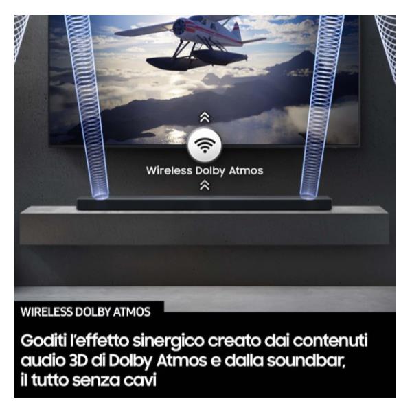 - Compatibilità Surround Wireless: Aggiungendo il kit di altoparlanti posteriori (venduti separatamente) trasformi il setup in un vero sistema cinema a 360°.