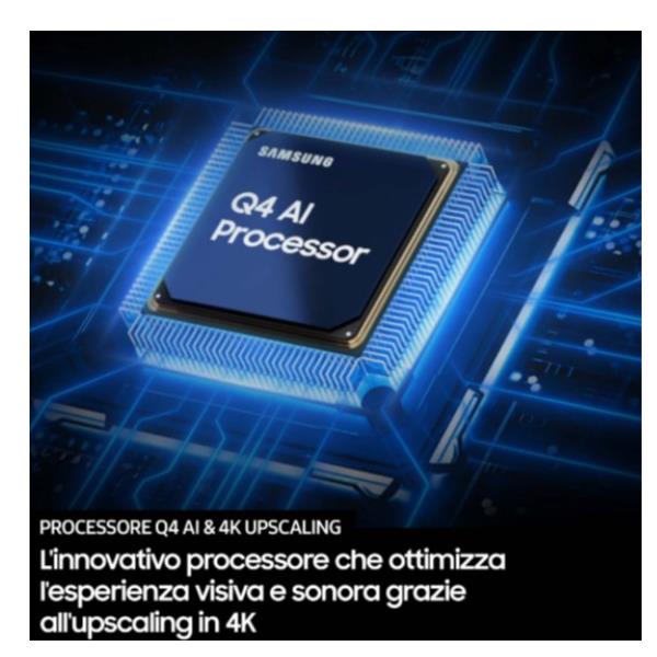- Processore AI Q4 Lite: Ottimizza ogni scena in tempo reale e migliora automaticamente i contenuti in bassa risoluzione con l’Upscaling 4K.