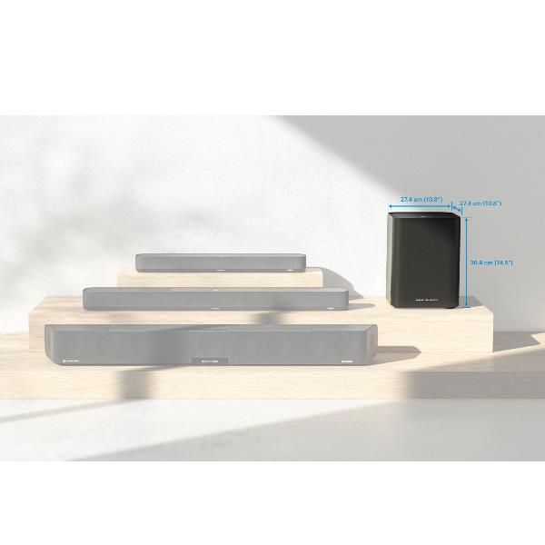 Grazie all’avanzatissima tecnologia di gamma multi-sub, per perfezionare ulteriormente la prestazione sui bassi, è possibile connettere fino a quattro subwoofer, calibrandoli uno per uno per ottenere un suono ottimale. E la stanza rimane in ordine: grazie alla connessione wireless, infatti, non è necessario utilizzare cavi.