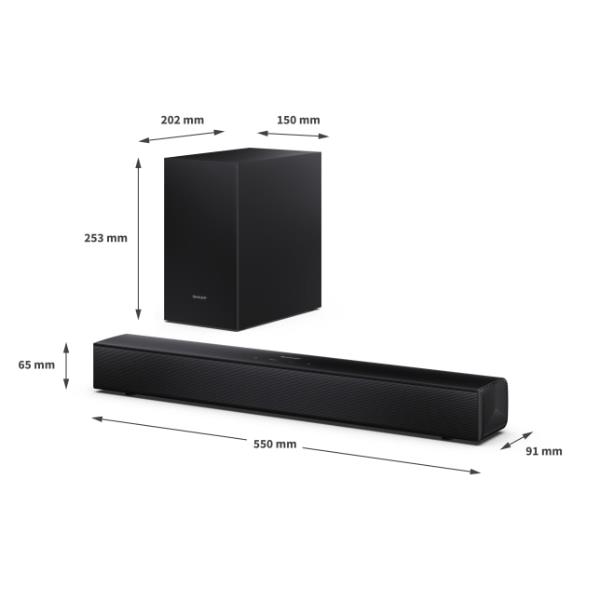 La tua TV merita di suonare bene. Questa soundbar Sharp 2.1 con subwoofer wireless è la soluzione perfetta per dare nuova vita al tuo salotto, anche se non hai molto spazio. Non ti accontentare più dell’audio piatto e sottile degli altoparlanti integrati.