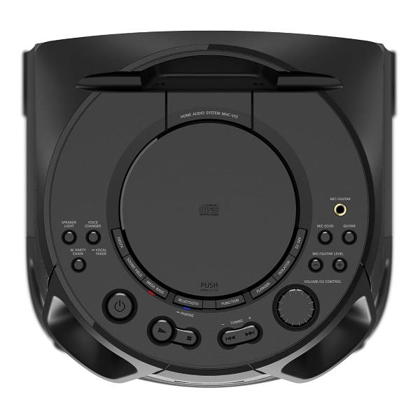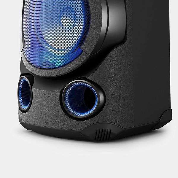 Il piccolo MHC-V13 offre un suono straordinario. I due tweeter alta efficienza e JET BASS BOOSTER fanno sì che l’audio si diffonda e raggiunga ogni angolo della stanza in modo che tutti i tuoi ospiti possano godere di un’esperienza sonora ricca e nitida.Due tweeter alta efficienza rivolti verso l’alto sono posizionati sulla parte anteriore alta dell’unità con tweeter a tromba, ampliando il palcoscenico sonoro e innalzando la pressione del suono in modo che la musica possa diffondersi meglio in ogni angolo dell’ambiente.
