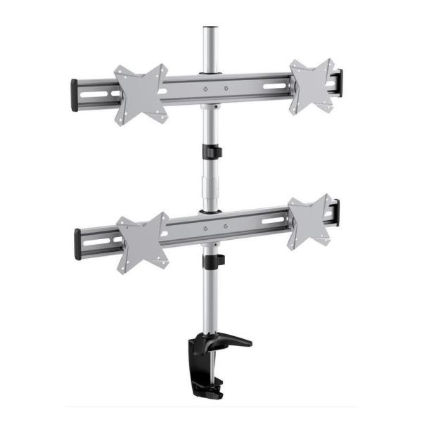 Il supporto a 4 attacchi per monitor modello 23270 è un prodotto solido e curato in ogni dettaglio, dotato di fissaggio al piano di lavoro grazie ad un meccanismo di serraggio che ne consente una facile installazione. Ogni singolo snodo di fissaggio permette di sostenere monitor per peso singolo pari a 8 kg, consentendo una tenuta totale certificata fino a 32 Kg totali. È possibile installare i monitor sia in versione landscaspe che portrait, grazie alla rotazione di 360° I monitor una volta installati possono essere anche inclinati fino a 15°, dando all’operatore la facilità di gestire la visione ottimale.