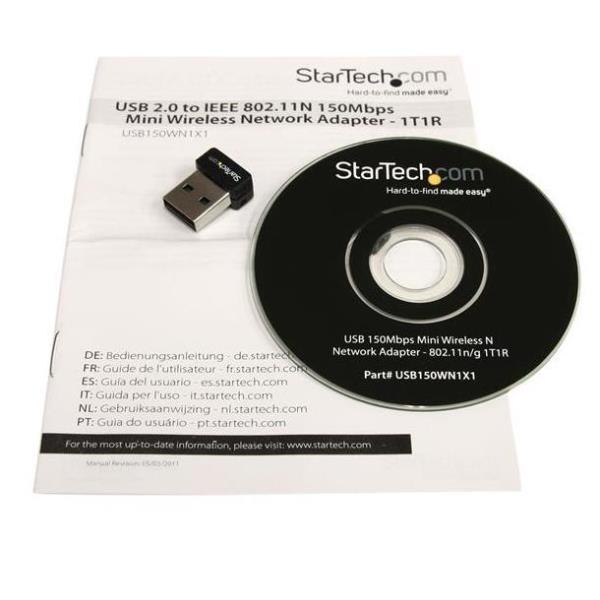 L’adattatore di rete wireless 802.11N mini USB USB150WN1X1 permette praticamente a ogni computer desktop, laptop o netbook dotato di USB di collegarsi a reti wireless ‘b’, ‘g’ o ‘n’. Utilizzando un design estremamente compatto 1T1R (1 trasmettitore/ ricevitore) con una frequenza da 2,4 GHz, l’adattatore USB è in grado di raggiungere 150 Mbps su una rete 802.11n occupando il minimo spazio.Compatibile all’indietro con reti 802.11b/g (11/54 Mbps), questo adattatore rappresenta una soluzione versatile per le reti wireless. Grazie al supporto delle opzioni di protezione standard e avanzate, quali WEP, WPA, oltre al supporto di QoS (Quality of Service), e alla semplice e rapida impostazione tramite WPS, questo adattatore USB 2.0 è dotato della garanzia di 2 anni di StarTech.com e del supporto tecnico a vita gratuito, che lo rendono un eccellente aggiornamento wireless o un’opzione di configurazione iniziale.