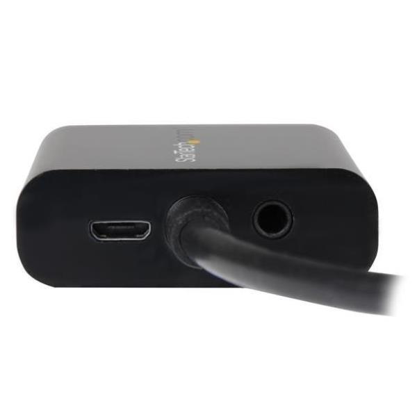 Questo unico adattatore DisplayPort™ a VGA è dotato di una porta audio integrata che consente di collegare dispositivi dotati di DisplayPort quali, ad esempio, laptop HP® EliteBook Folio 9470m a un display o proiettore VGA con audio. Consente di condividere presentazioni e video Poiché la maggior parte delle sale riunioni hanno una disposizione diversa, la lunghezza dei cavi disponibile varia in ogni locale. Non tutti i laptop hanno porte DisplayPort (DP) e audio posizionate sullo stesso lato, ciò può risultare un problema quando si devono eseguire delle presentazioni. Può anche significare che alcune porte potrebbero essere troppo distanti durante una riunione. Questo pratico adattatore consente di posizionare le porte audio e video sullo stesso lato del laptop assicurando che tutte le porte necessarie siano accessibili al momento del bisogno. Consente di sostituire una porta audio danneggiata Se la porta audio sul dispositivo mobile è danneggiata o bloccata da altri collegamenti, questo pratico adattatore permette di avere sempre a disposizione tutte le porte necessarie per ogni presentazione. Collegando l’audio al laptop mediante l’adattatore, potete essere preparati per qualsiasi situazione. Per utilizzare la funzione audio dell’adattatore dovete alimentare l’adattatore mediante una porta USB del laptop oppure utilizzando una porta di ricarica della morsettiera USB. È sufficiente collegare un cavo Micro USB dall’adattatore alla porta USB e l’audio sarà disponibile quando eseguite la presentazione. Consente di creare un ambiente ordinato L’adattatore può inoltre essere utilizzato per collegare il computer laptop o desktop al monitor e agli altoparlanti. L’adattatore e i cavi collegati possono essere comodamente posizionati sul retro del monitor creando una configurazione ordinata di tutti i dispositivi. Sempre pronti ovunque voi siate Questo adattatore DisplayPort a VGA è estremamente portatile grazie al design leggero a ingombro ridotto. È l’accessorio ideale da portare con i dispositivi mobili utilizzati, si ripone facilmente nella borsa del laptop o nel contenitore per il trasporto. Questo design ultraportatile rende l’adattatore perfetto per le applicazioni BYOD (Bring Your Own Device) in ufficio. Consente inoltre di arrivare preparati alla presentazione a un potenziale cliente, alla formazione fuori sede o all’incontro con un cliente quando si è in viaggio. DP2VGAA è coperto dalla garanzia di 3 anni StarTech.com e dal supporto tecnico gratuito a vita.