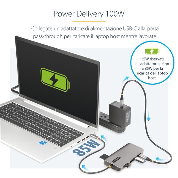 - Ricarica intelligente: La porta pass-through PD da 100W ricarica il tuo laptop (fino a 85W) mentre alimenta l’hub, eliminando la necessità di un alimentatore separato.