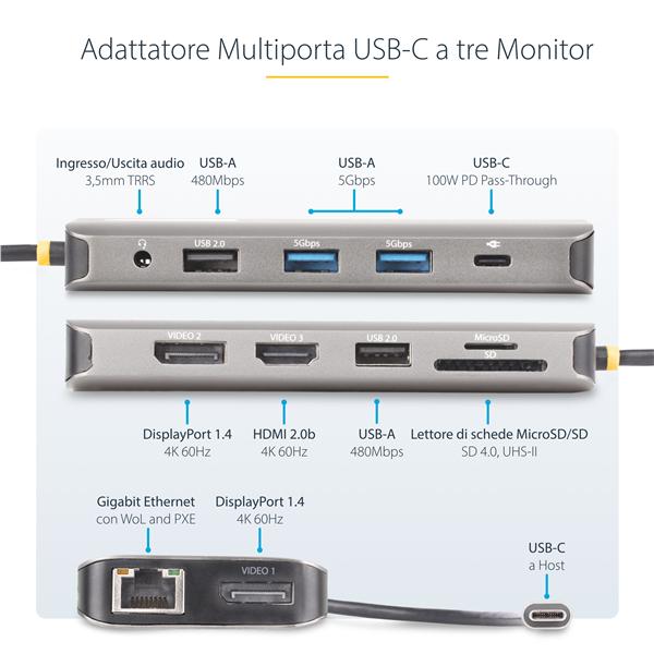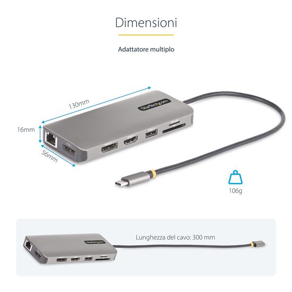 Non è solo un adattatore video: è un hub completo che ti mette a disposizione tutto ciò che ti serve in un unico dispositivo robusto e ben costruito.