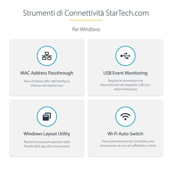 - Per i professionisti: Funzionalità avanzate come il MAC Address Pass-Through per la sicurezza di rete e il monitoraggio degli eventi USB lo rendono uno strumento affidabile anche per ambienti IT.