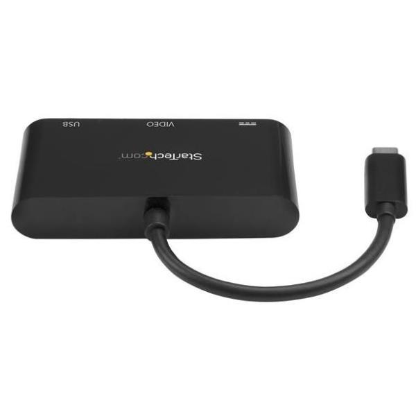 Questo adattatore multiporta USB-C VGA combina le funzionalità di due adattatori a funzione singola, ovvero di un adattatore video USB-C e di un adattatore USB-C a USB, in una docking station portatile per computer laptop. È possibile eseguire all’instante il collegamento a un display VGA e a un dispositivo USB 3.0 (Type-A) e allo stesso tempo alimentare e ricaricare il computer laptop utilizzando lo stesso adattatore.