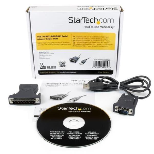 Il cavo adattatore seriale USB a RS-232 DB9/DB25 (M/M) ICUSB232DB25 consente di collegare dispositivi seriali a 9 pin (DB9) o a 25 pin (DB25) RS-232 a computer desktop o laptop tramite porta USB, come se il computer fosse dotato di una porta seriale sulla scheda. Il cavo integrato da 0,9 metri permette il collegamento diretto dal dispositivo seriale al computer senza cavi aggiuntivi. Una soluzione conveniente che risolve i problemi di compatibilità tra periferiche seriali di computer moderni e di vecchia generazione, questo cavo adattatore seriale USB/RS-232 di alta qualità viene fornito con adattatore DB-9 a DB-25 per la connessione di vari dispositivi seriali. Con garanzia StarTech.com di 2 anni e supporto tecnico a vita gratuito.