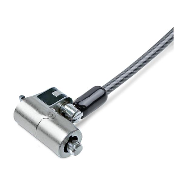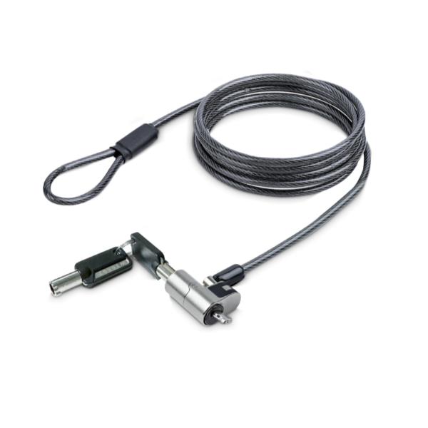 CAVO DI SICUREZZA PER NOTEBOOK CON NANO SLOT: cavo antifurto resistente al taglio con rivestimento in PVC – Struttura del cavo placcata in lega di zinco – Design compatto per notebook ultra-sottili – Include un nastro a strappo per riporlo ordinatamente