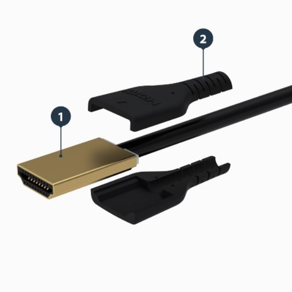 - Connettori indistruttibili: I connettori HDMI sono placcati in oro per una connessione ottimale e protetti da una robusta cuffia metallica. Il punto critico dove il cavo si unisce al connettore è rinforzato da un serracavo testato per oltre 10.000 piegature a 180°, prevenendo le rotture più comuni.