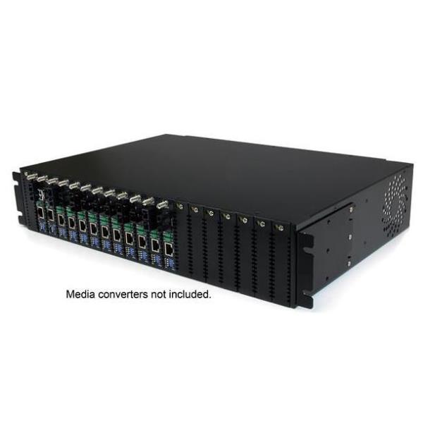 Un accessorio perfetto per i convertitori ET serie 2 StarTech.com, questo chassis 2U è progettato in modo che tutti i componenti critici (alimentazione, ventole e schede di convertitori multimediali) abbiano la funzione hot swap per evitate interruzioni di rete.
