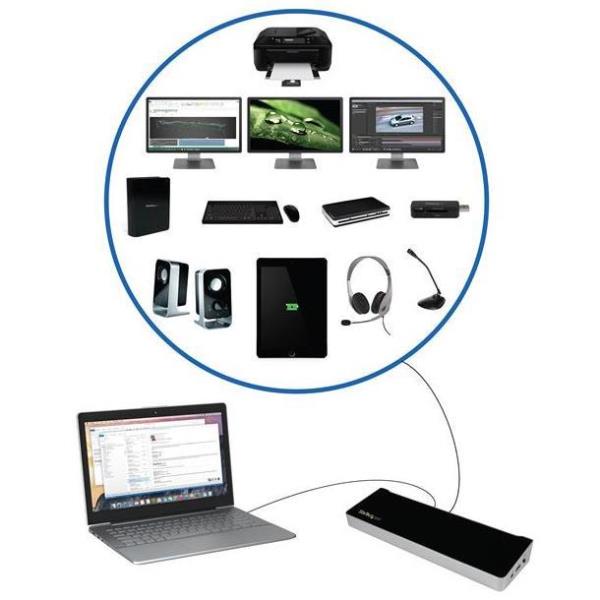 Trasforma il tuo laptop in una vera postazione di lavoro. Questa docking station universale si collega a qualsiasi computer Windows o Mac via USB 3.0, liberandoti dai limiti delle soluzioni proprietarie che funzionano solo con marche specifiche.