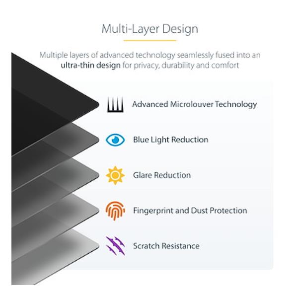 PROTEZIONE DEI DATI SENSIBILI: schermo universale per la privacy in acrilico da 24" sospeso con tecnologia Microlouver; oscura la vista al di fuori di un angolo di visione di 60 gradi per mantenere la privacy dei dati e prevenire le intercettazioni visive.