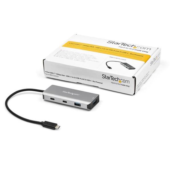 La connettività di un computer laptop USB-C è facilmente espandibile grazie a questo hub USB-C Gen 2 di nuova generazione che offre 10 Gbps a supporto di una maggiore larghezza di banda del bus per i dispositivi connessi con velocità di trasferimento dei dati più elevate. Inserendolo nella porta USB Type-C™ o Thunderbolt™ 3 del dispositivo in uso, l’hub USB-C a 4 porte con alimentazione tramite bus consente di aggiungere due porte USB-C e due porte USB-A e poter quindi collegare rapidamente più dispositivi USB.