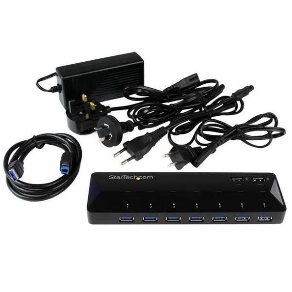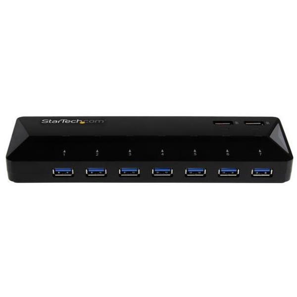Questo hub USB 3.0 a 7 porte funziona come hub dati tradizionale per il computer, nonché come stazione di ricarica a due porte per i dispositivi mobili. Ora è possibile aggiungere comodamente al MacBook, laptop o desktop sette porte USB 3.0 e due porte di ricarica rapida 2,4 A. È l’aggiunta perfetta per qualsiasi ambiente domestico, di ufficio o con postazioni di lavoro condivise. Permette di ricaricare rapidamente Android™, iPad e iPhone