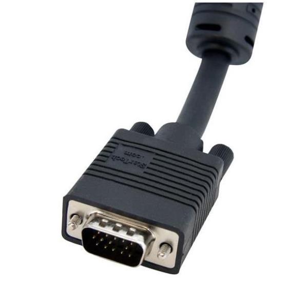 Adatto ad applicazioni VGA ad alta risoluzione, questo cavo di prolunga VGA coassiale maschio-femmina di alta qualità consente di eliminare l’effetto "ghosting" e le immagini sfocate tipiche dei cavi non coassiali, e fornisce protezione superiore dalle interferenze EMI tramite l’uso di nuclei di ferrite vicino ai terminali dei connettori.