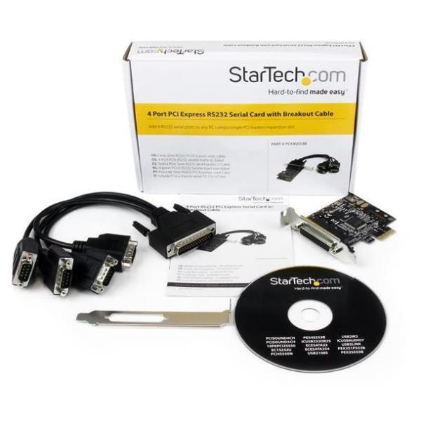 La scheda seriale 4 porte PCI Express RS-232 (con cavo di ripartizione) PEX4S553B consente di aggiungere quattro porte seriali RS-232 tramite un singolo slot di espansione PCIe, con un cavo 1 a 4 incluso che permette di aggiungere 4 porte seriali a uno slot a profilo singolo.La scheda seriale presenta un design a chip singolo nativo che offre affidabilità e velocità ottimali riducendo al contempo il carico della CPU fino al 48% rispetto alle schede seriali convenzionali con chip ponte; una soluzione conveniente per il collegamento di dispositivi seriali di precedente generazione a moderni computer abilitati per PCIe.L’adattatore seriale multiporta include staffe di installazione basso profilo/mezza altezza per garantire la compatibilità con computer dal fattore di forma sia ridotto che standard; è compatibile, inoltre, con una vasta gamma di sistemi operativi, tra cui Windows®, Linux e Mac OS.Questo articolo sostituisce la scheda PEX4S552B.Con garanzia a vita StarTech.com e supporto tecnico a vita gratuito