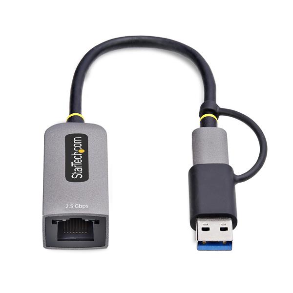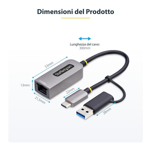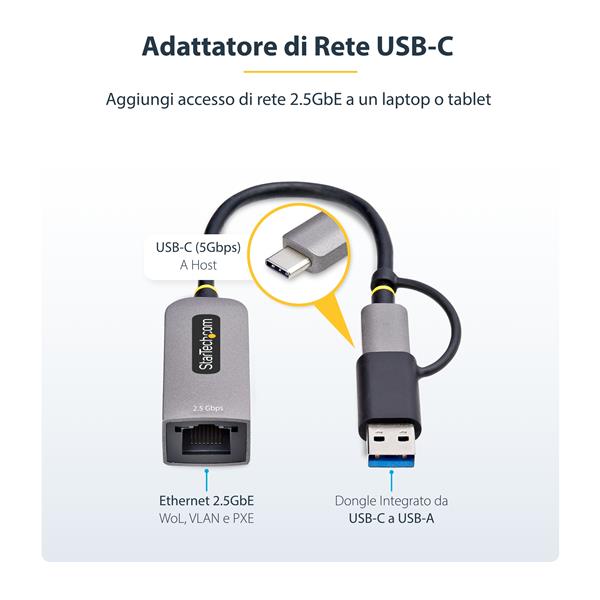 StarTech.com Adattatore Ethernet USB C, Convertitore di Rete/NIC NBASE-T 2.5/1GbE da USB Type-C 3.0 a RJ45 con Adattatore USB-A incluso; Compatibile TB, Win e MacConsente di aggiungere una porta Ethernet da 2,5Gb a MacBook, Chromebook™e portatili con porta USB-C o Thunderbolt™3