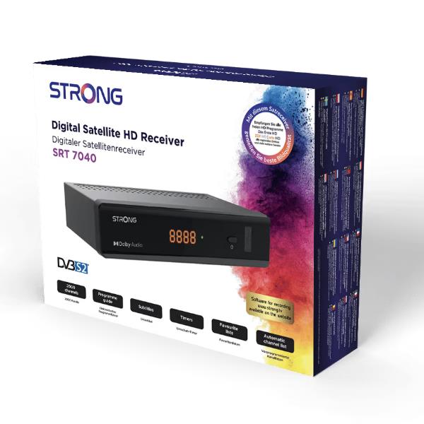 Godetevi la vostra esperienza televisiva con questo ricevitore satellitare digitale ad alta definizione SRT 7040. La facilità d’uso, il menu intuitivo e le comode funzioni rendono il ricevitore un partner affidabile per l’intrattenimento domestico. Inoltre, è possibile riprodurre la TV digitale in chiaro e la radio via satellite. Il ricevitore dispone anche di molte altre utili funzioni, come la ricerca rapida dei canali, le liste dei preferiti per la selezione individuale dei programmi TV e radio, la prenotazione degli eventi direttamente dalla Guida Elettronica ai Programmi (EPG), il televideo e molto altro ancora sono standard per un ricevitore STRONG.