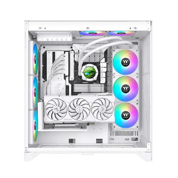 Il TH360 V2 Ultra EX ARGB Sync Snow è dotato di tre ventole bianche CT120 EX ARGB Sync, che offrono un’esperienza di creazione di PC migliorata con il nuovo MagForce 2.0, consentendo un assemblaggio delle ventole più rapido e una connessione più stabile. Questo AIO presenta anche un design completamente modulare, che consente di utilizzare le ventole sull’AIO collegandole con un singolo cavo o come ventole individuali che si alimentano con tre diversi cavi forniti. Inoltre, TH360 V2 Ultra EX ARGB Sync Snow ha un design con cappuccio industriale con display LCD con risoluzione 480 x 480 ed è adatto per chassis di medie e grandi dimensioni che ospitano AIO da 360 mm, offrendo sia l’estetica Ultra che la funzionalità MagForce 2.0.