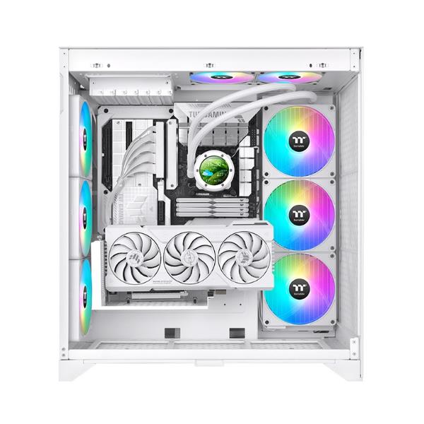 Il TH420 V2 Ultra EX ARGB Sync Snow è dotato di tre ventole bianche CT140 EX ARGB Sync, che offrono un’esperienza di creazione di PC migliorata con il nuovo MagForce 2.0, consentendo un assemblaggio delle ventole più rapido e una connessione più stabile. Questo AIO presenta anche un design completamente modulare, che consente di utilizzare le ventole sull’AIO collegandole con un singolo cavo o come ventole individuali che si alimentano con tre diversi cavi forniti. Inoltre, TH420 V2 Ultra EX ARGB Sync Snow ha un design con cappuccio industriale con display LCD con risoluzione 480 x 480 ed è adatto per chassis di medie e grandi dimensioni che ospitano AIO da 420 mm, offrendo sia l’estetica Ultra che la funzionalità MagForce 2.0.