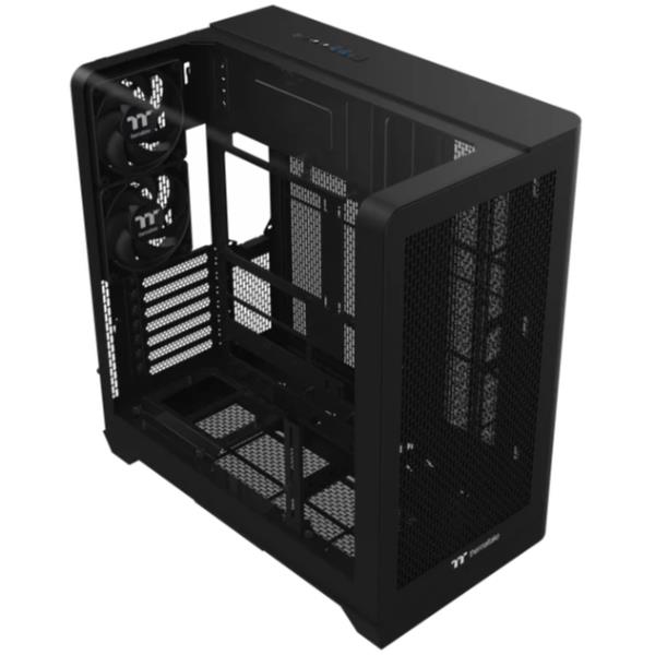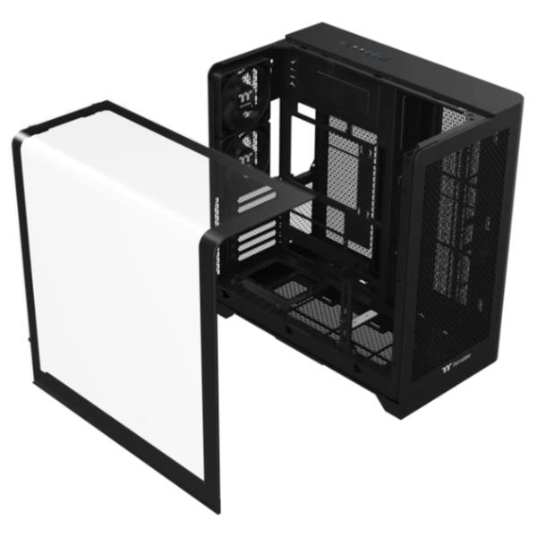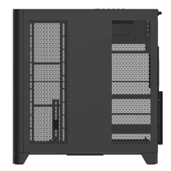 Il case Mid Tower View 390 Air è un ATX con pannello laterale/superiore curvo in vetro temperato, pannello frontale perforato, slot PCI-E girevoli, supporto per GPU e due ventole posteriori CT120. È disponibile un kit opzionale con schermo LCD da 6" per una migliore visualizzazione.