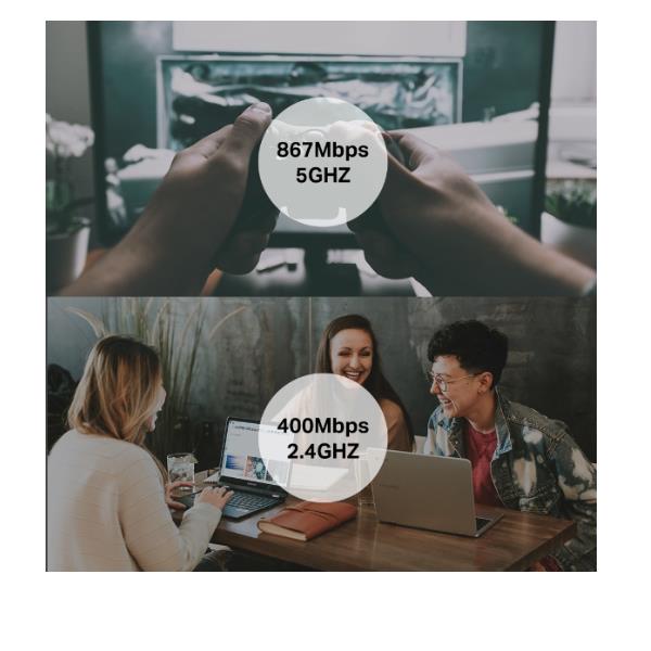 Wi-Fi AC1300 – Due bande per una velocità combinata fino a 1300Mbps (400Mbps 2.4GHz e 867Mbps 5GHz).