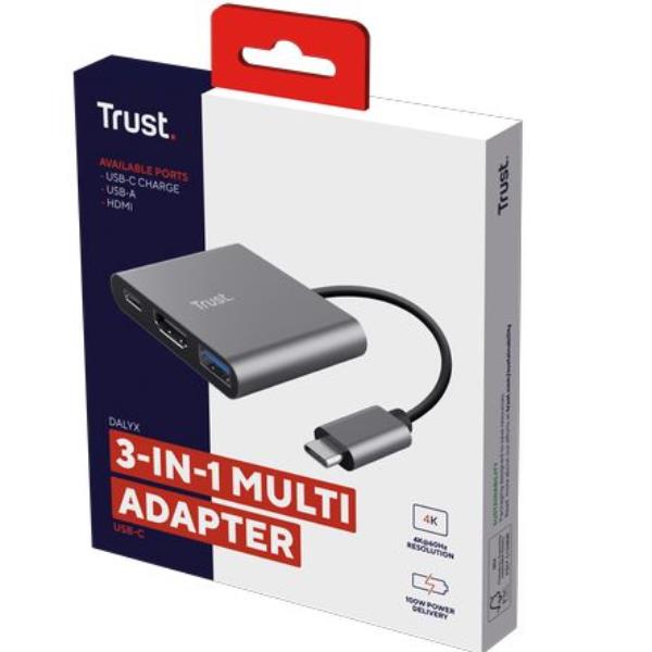 Con l’adattatore multiporta Trust Dalyx 3-in-1 USB-C, puoi ottenere il massimo dal laptop. Aumenta il numero di porte sul laptop e collegati a più dispositivi attraverso la porta HDMI, USB-A e USB-C per la ricarica.