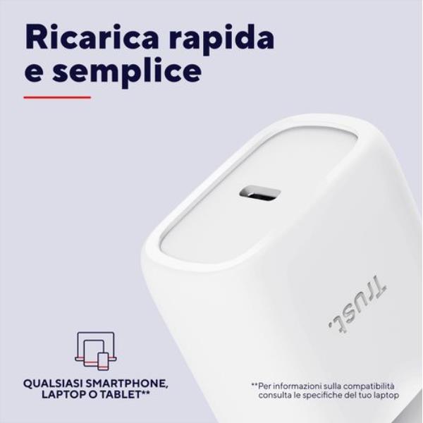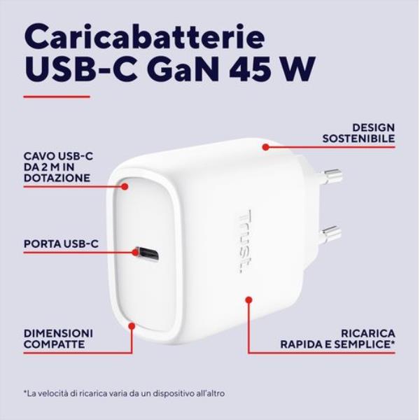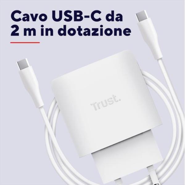 Alimentatore Notebook Trust 45W USB-C GaN Cavo Incluso Bianco