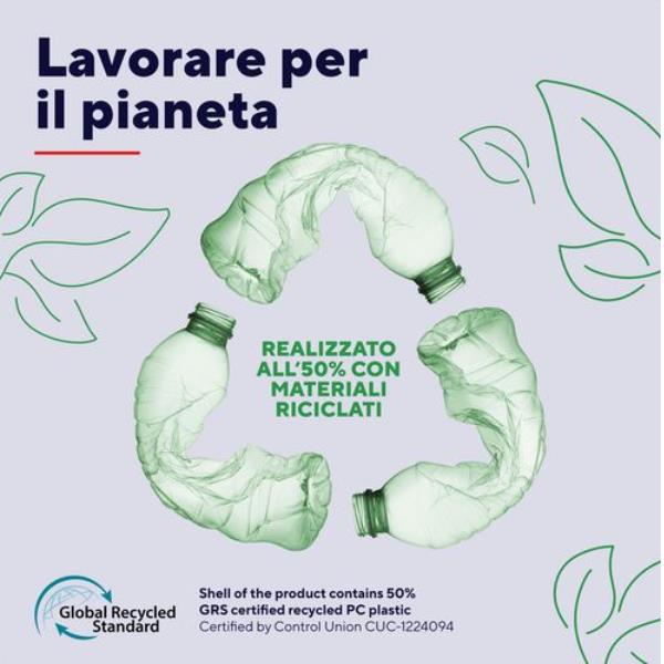 - Sostenibilità concreta: Realizzato con il 50% di materiali riciclati, per una scelta responsabile.