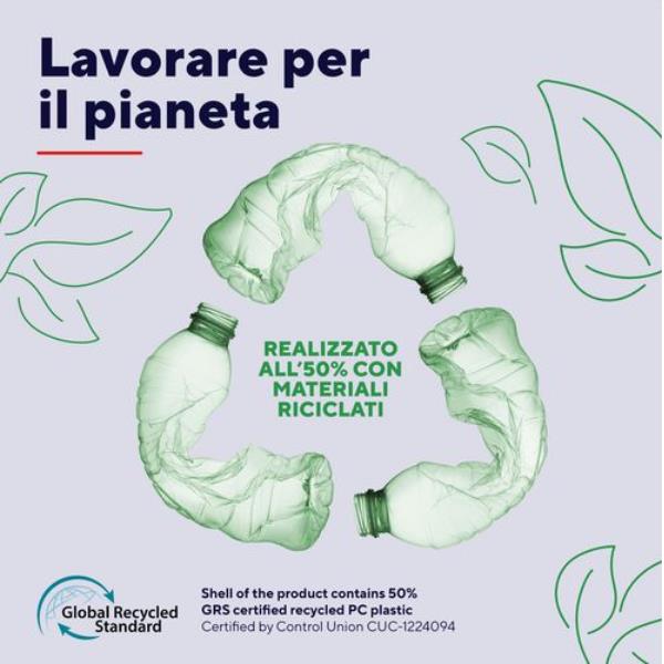 Con il caricabatterie GaN da 65W USB-C Maxo non resterai mai a secco di energia. Compatibile con qualsiasi dispositivo dotato di connessione USB-C, questo caricabatterie compatto, con cavo da 2 m incluso, permette di caricare il tuo smartphone, tablet o laptop* in men che non si dica. Inoltre, è realizzato al 50% in materiali riciclati, per una ricarica più eco-friendly che mai! *Per informazioni sulla compatibilità consulta le specifiche del tuo laptop