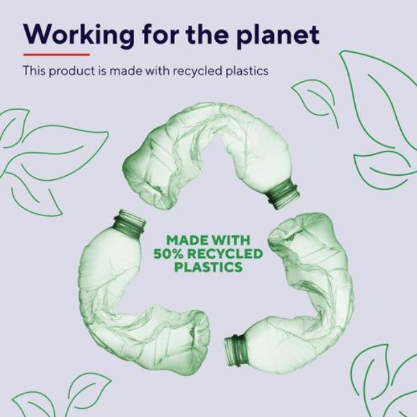 Grazie alle sue dimensioni compatte, Maxo può essere facilmente collocato su scrivanie, tavoli o armadietti senza occupare troppo spazio. Inoltre, è realizzato al 50% in plastica riciclata, consentendoti di lavorare in modo più sostenibile.