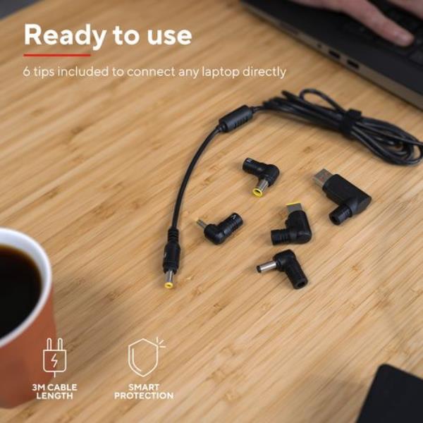 La tua sicurezza e quella del dispositivo vengono prima di tutto. Questo alimentatore integra un sistema di protezione smart che monitora costantemente il flusso di energia, proteggendo il tuo laptop dai rischi di sovraccarico e surriscaldamento. Un design efficiente e a basso consumo assicura prestazioni stabili, evitando sprechi energetici.