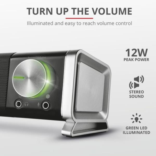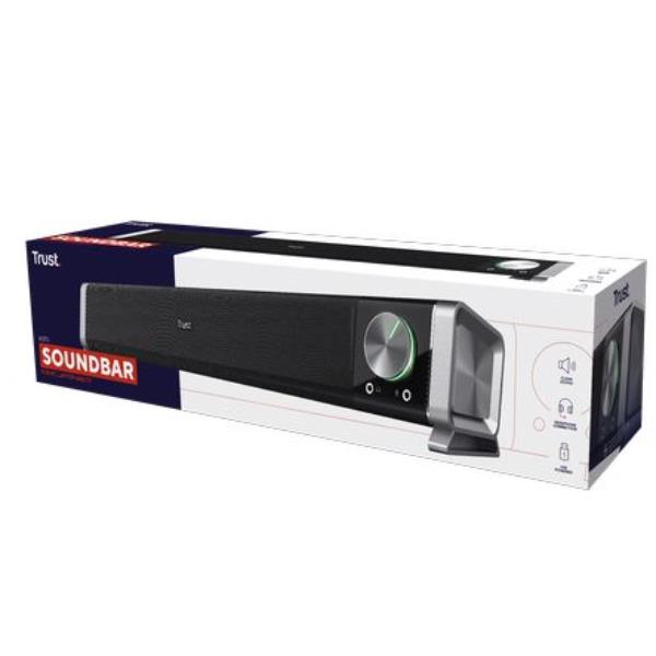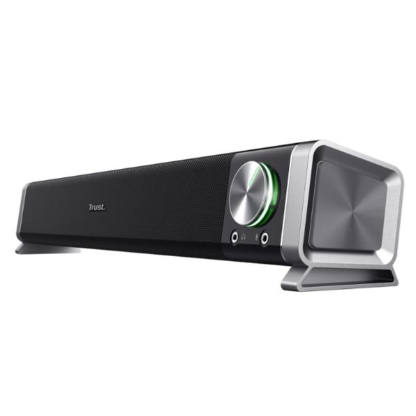 La soundbar Asto è un complemento raffinato per qualsiasi postazione di intrattenimento, con un design compatto salvaspazio che si adatta facilmente alla maggior parte di monitor e TV.