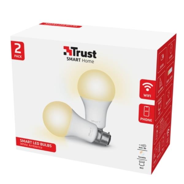 Passa all’illuminazione smart! Ti basta lo smartphone per azionare facilmente la lampadina smart WiFi B22 LED di Trust Smart Home WiFi, ovunque tu sia. Con la temperatura regolabile del colore, puoi passare dalla luce particolarmente calda per una serata romantica alla luce bianca per favorire la concentrazione.