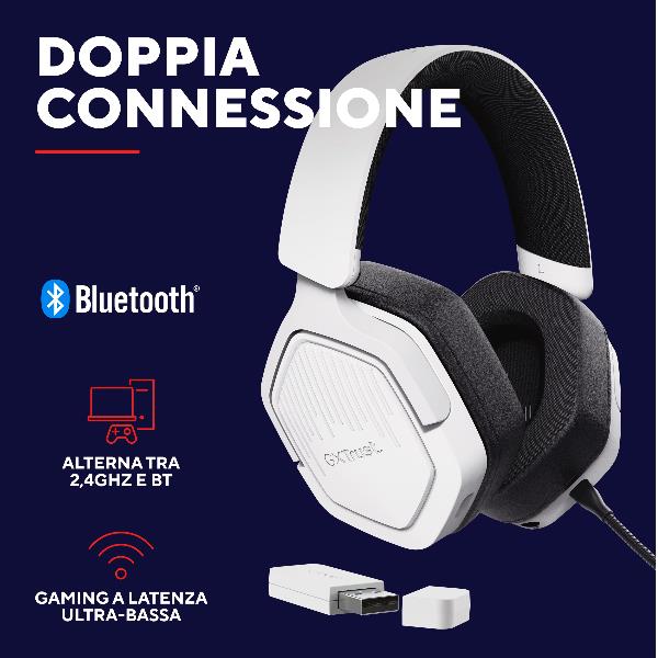Le cuffie gaming wireless Carus per PlayStation® tagliano il filo, non la performance. La connessione wireless a 2.4 GHz tramite il ricevitore USB dedicato garantisce un’audio sincronizzato al millisecondo, per una reattività che senti davvero. Quando serve più flessibilità, passa al Bluetooth® senza perdere il passo.