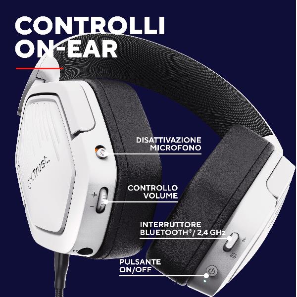 - Comandi integrati: regola volume e silenzia il microfono direttamente sul padiglione.