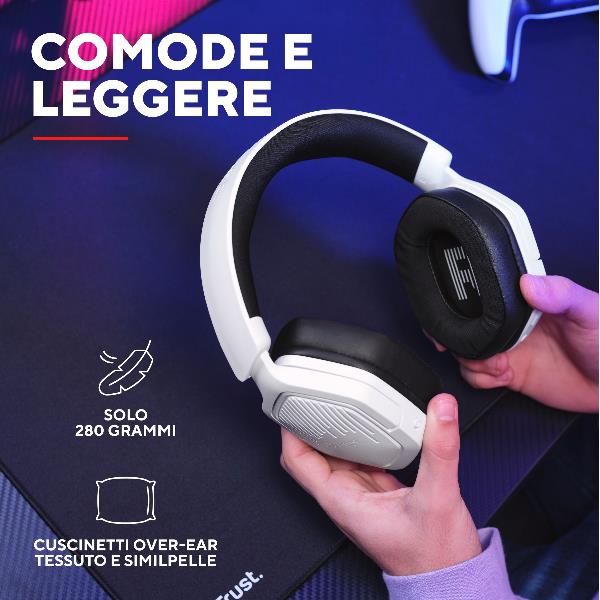 I cuscinetti in tessuto e pelle sintetica avvolgono le orecchie senza schiacciarle, mentre l’archetto regolabile si adatta alla tua testa. Sono progettate per essere dimenticate, anche dopo ore di gioco.