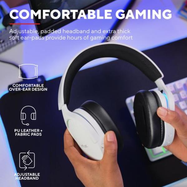 Fai fare un salto di qualità al tuo gaming con queste eleganti cuffie con microfono. Illuminazione RGB multicolore regolabile con tre modalità di colore (più modalità spento) per esprimere il tuo stile quando e come vuoi mentre giochi.
