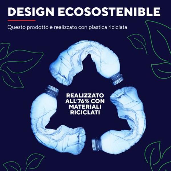 - Design pratico e sostenibile: Linee pulite, un comodo controllo del volume a portata di dito e una presa per cuffie frontale. Inoltre, il cabinet è realizzato con il 76% di plastica riciclata.