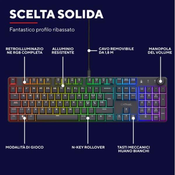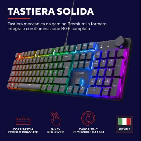Con la tastiera meccanica da gaming Torix la vittoria è a portata di dita. Grazie ai copritasti a profilo ribassato e agli interruttori meccanici lineari Huano, questa tastiera consente una pressione dei tasti più rapida e fino a 50 milioni di battute per una maggiore comodità e precisione durante il gioco.