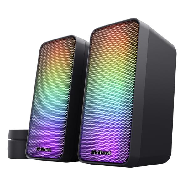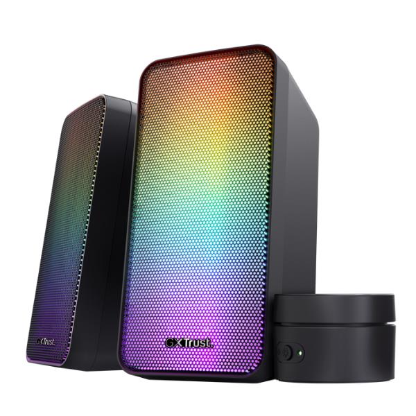 Un set di altoparlanti che unisce stile e semplicità. I GXT 611 Wezz non si limitano a riprodurre il suono, lo rendono visibile grazie alla loro illuminazione RGB dinamica, che cambia e pulsa a ritmo di musica, film o effetti di gioco.