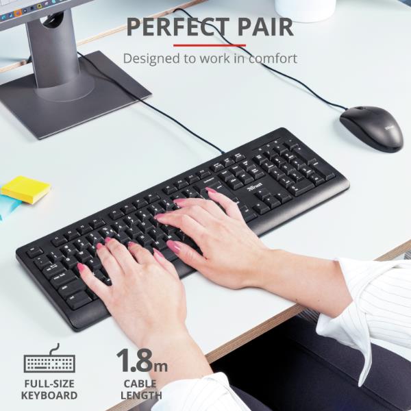 Cerchi un set tastiera e mouse affidabile, senza fronzoli e pronto all’uso? Il set Trust Primo è la soluzione perfetta per il lavoro quotidiano, lo studio o l’uso domestico. Ti permette di lavorare in pieno comfort fin dal primo collegamento.