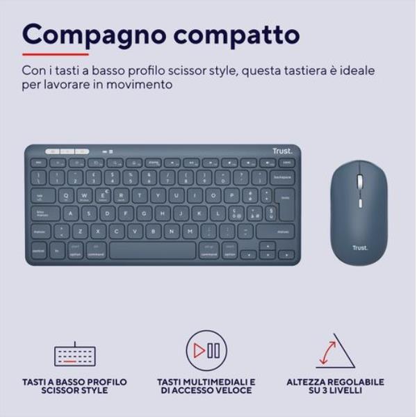 Ideale per viaggiatori e pendolari (o chiunque voglia semplicemente una tastiera più piccola!), Lyra è dotata di tasti compatti e bassi, stile laptop, e un piede regolabile a 3 altezze. Il mouse è anche piccolo e robusto: un set ideale per lavorare in ufficio, a casa e in viaggio.