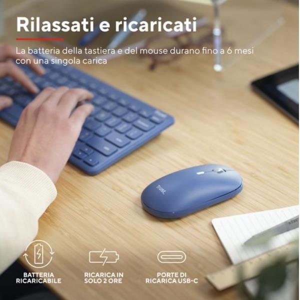 Dì addio alla scomodità di dover sempre cambiare batterie: grazie alla sua batteria ricaricabile integrata, il mouse e la tastiera hanno un’autonomia fino a 6 mesi con una sola carica e possono essere facilmente ricaricati in sole due ore, anche mentre li usi.