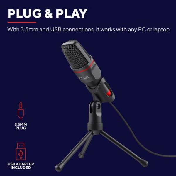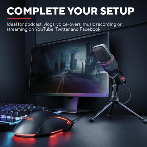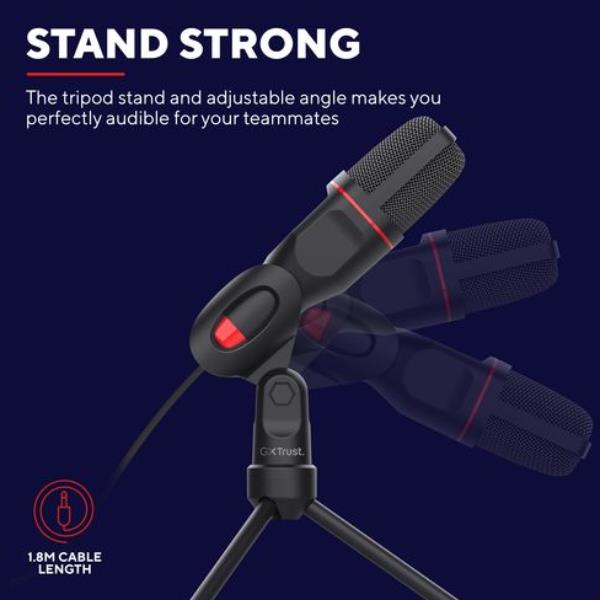 Il microfono USB Trust GXT 212 Mico è il tuo alleato per comunicare con chiarezza assoluta, che tu stia coordinando l’ultima mossa vincente con il tuo team o registrando contenuti per il tuo canale.